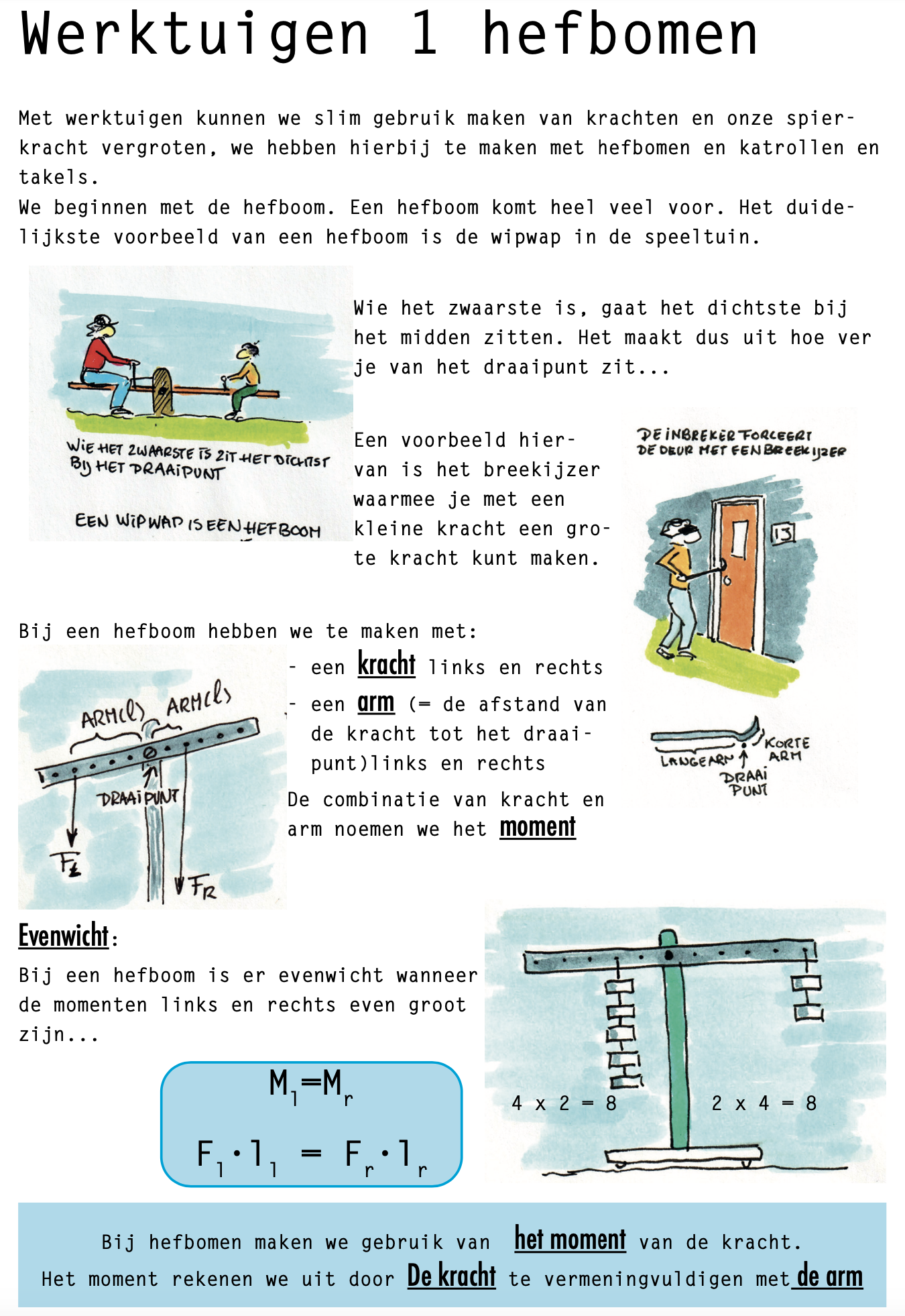 2 bij hefbomen in evenwicht uitleggen op welke manier met een kleine kracht een grote kracht wordt