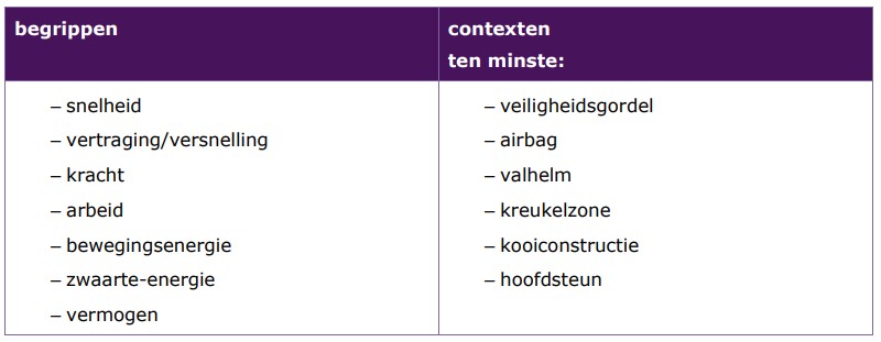 De kandidaat kan 1 berekeningen maken en redeneringen uitvoeren waarbij natuurkundige begrippen en formules worden toegepast in situaties van verkeer en veiligheid:
